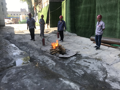 2019年7月3日上午9時,和平小區(qū)項目部管理人員及易通勞務施工人員,在施工現(xiàn)場進行了消防應急演練。