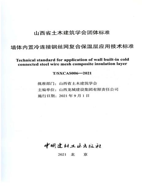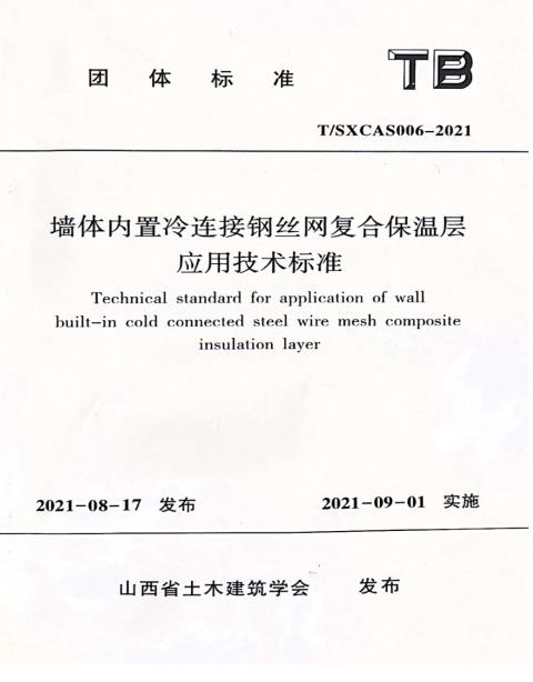 山西龍城建設(shè)集團(tuán)主編的山西省土木建筑學(xué)會團(tuán)體標(biāo)準(zhǔn)《墻體內(nèi)置冷連接鋼絲網(wǎng)復(fù)合保溫層應(yīng)用技術(shù)標(biāo)準(zhǔn)》T/SXCAS006-2021,已于2021年8月17日發(fā)布,2021年9月1日正式實施。